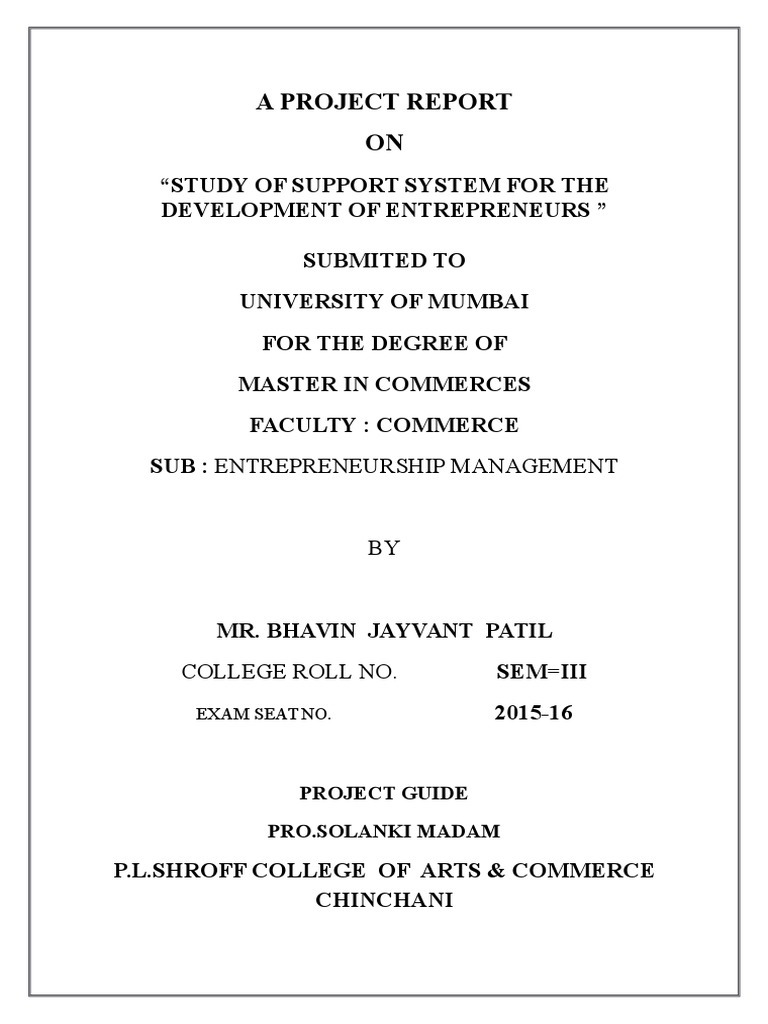 DEVELOPMENT OF ENTREPRENEURSHIP. I would like