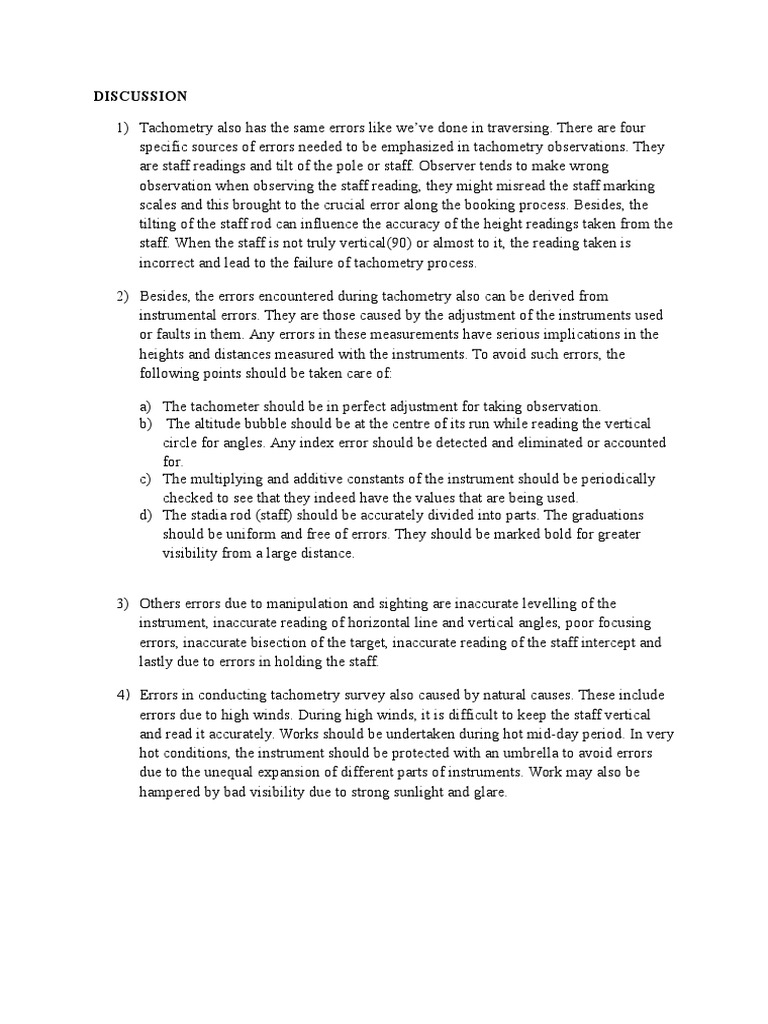 1) Tachometry also has the same errors like weve done in traversing. There are four