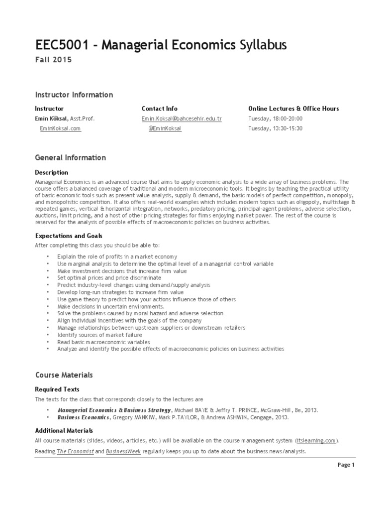 EEC5001 - Managerial Economics Syllabus