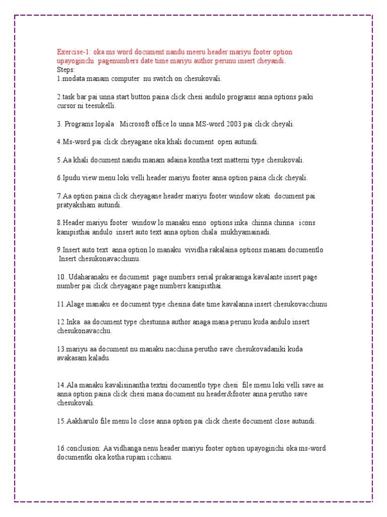 Exercise-3:Oka ms-word document lo text ni type chesi daniki borders and shading