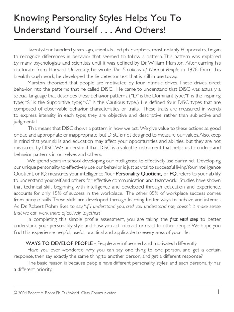 measured by DISC. We understand that DISC is a valuable instrument that helps us to understand