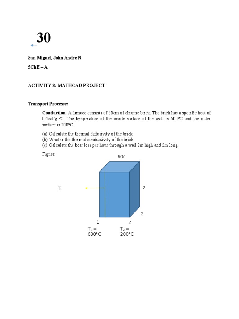 Conduction: A furnace consists of 60cm of chrome brick. The brick has a specific heat of