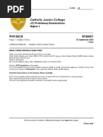 57. A hollow sphere P of mass 0.002 kg and a solid sphere Q of mass 0.01 kg are joined by a