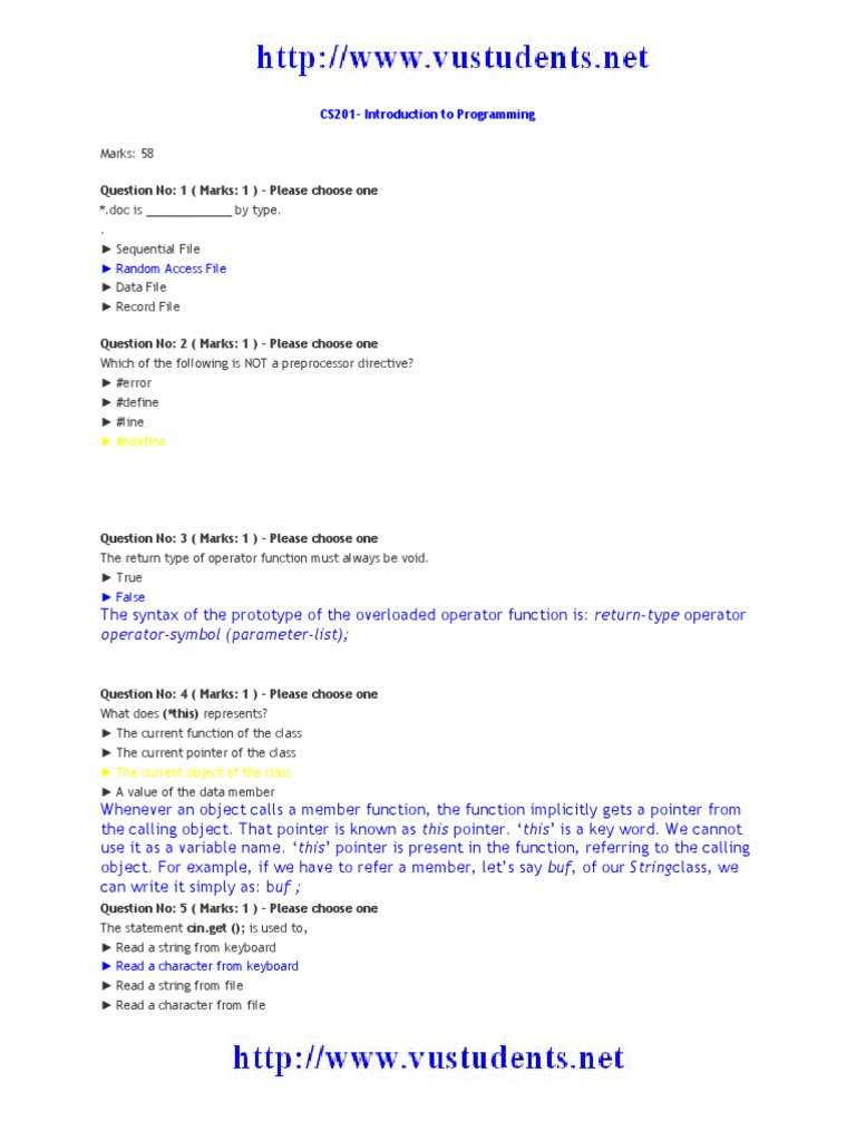 Question No: 1 ( Marks: 1 ) - Please choose one