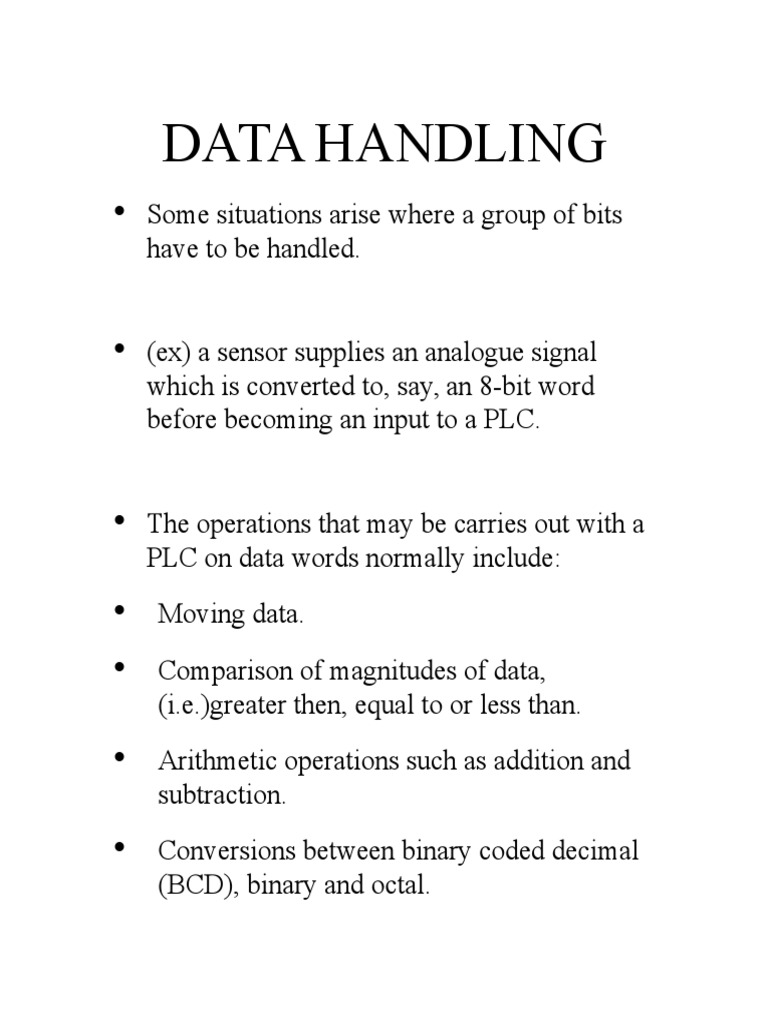 handled by a PLC. As the