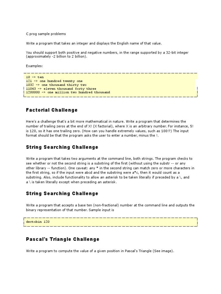 C prog sample problems