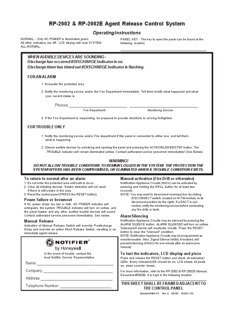 1. Notify the monitoring service and/or Fire department if this panel is connected to either one, and tell them