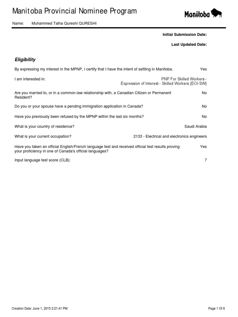 application to the MPNP-SW for consideration as Provincial Nominees.