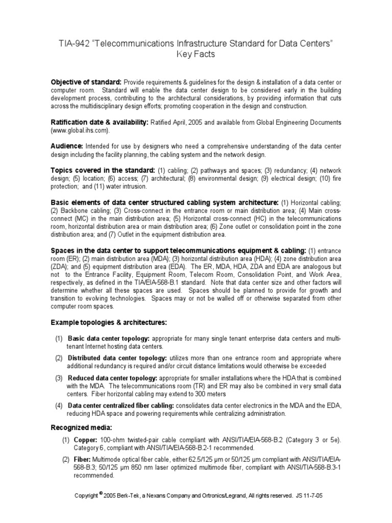 TIA-942 Telecommunications Infrastructure Standard for Data Centers