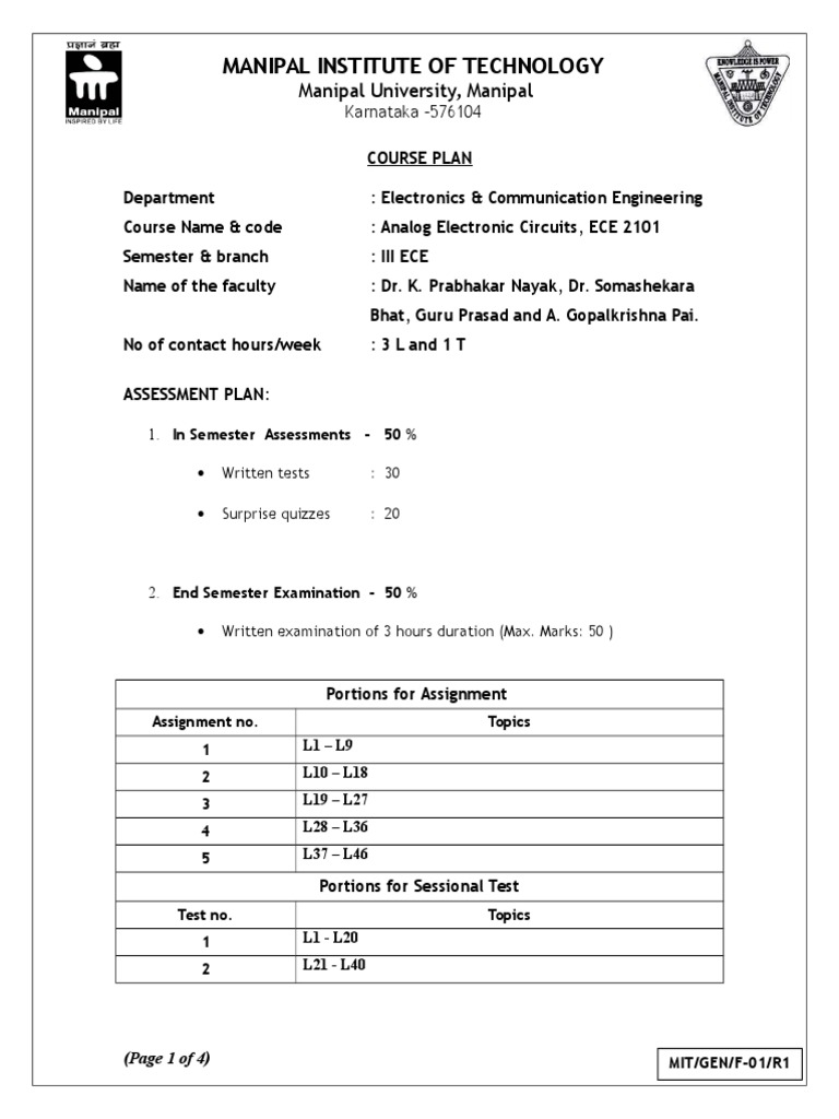 : Analog Electronic Circuits, ECE 2101