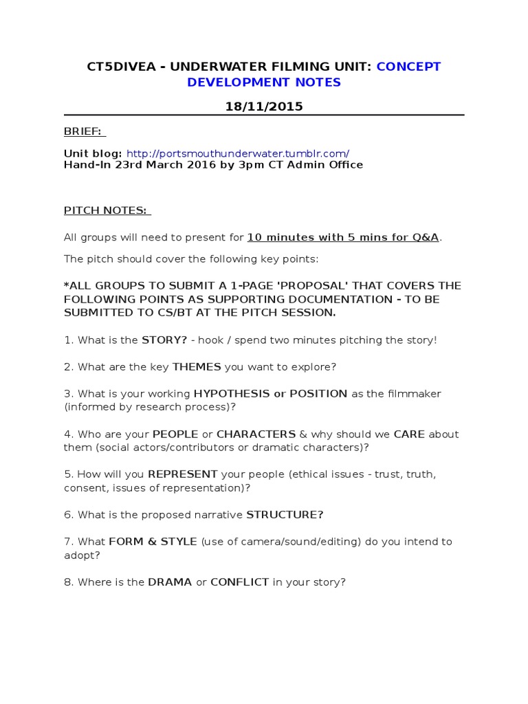 NB. All projects require a treatment that was approved by your tutor.