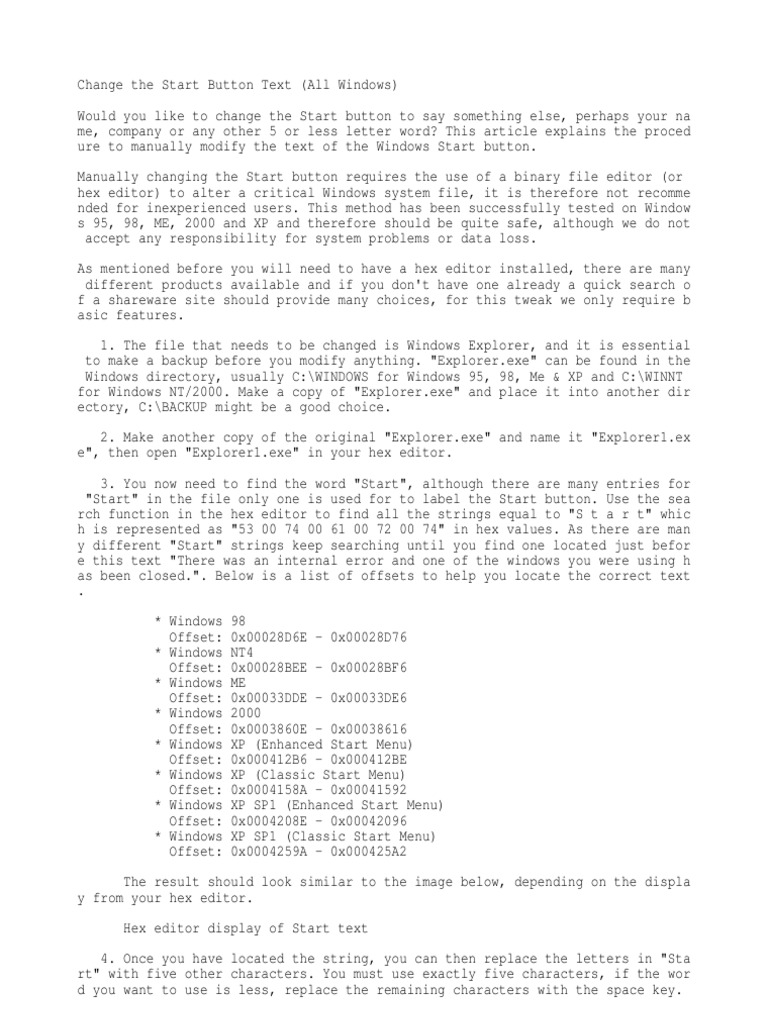 hex editor) to alter a critical Windows system file, it is therefore not recomme