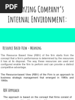 competitive environment. The RBV combines the internal analysis phenomena within companies with the external analysis of