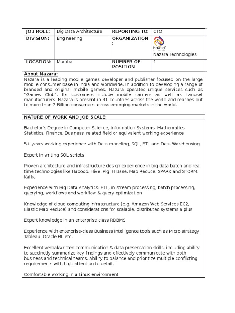 Proven architecture and infrastructure design experience in big data batch and real