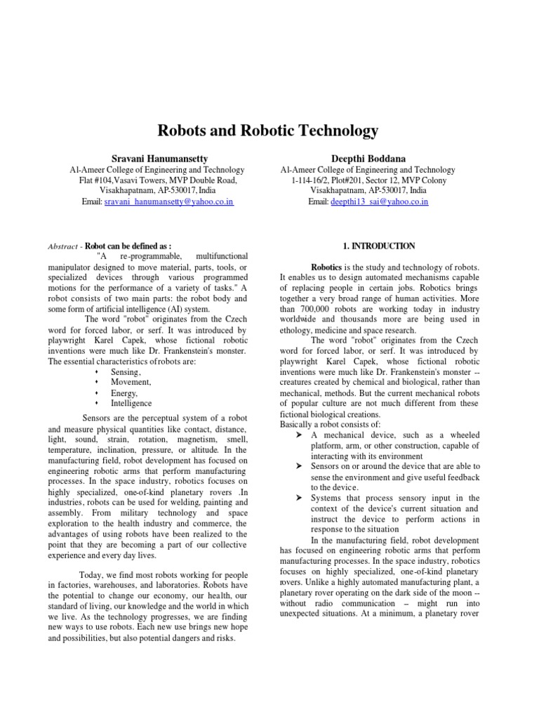 Abstract - Robot can be defined as : 1. INTRODUCTION