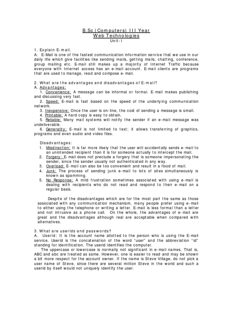 A. E-Mail is one of the fastest communication information serv ice that we use in our