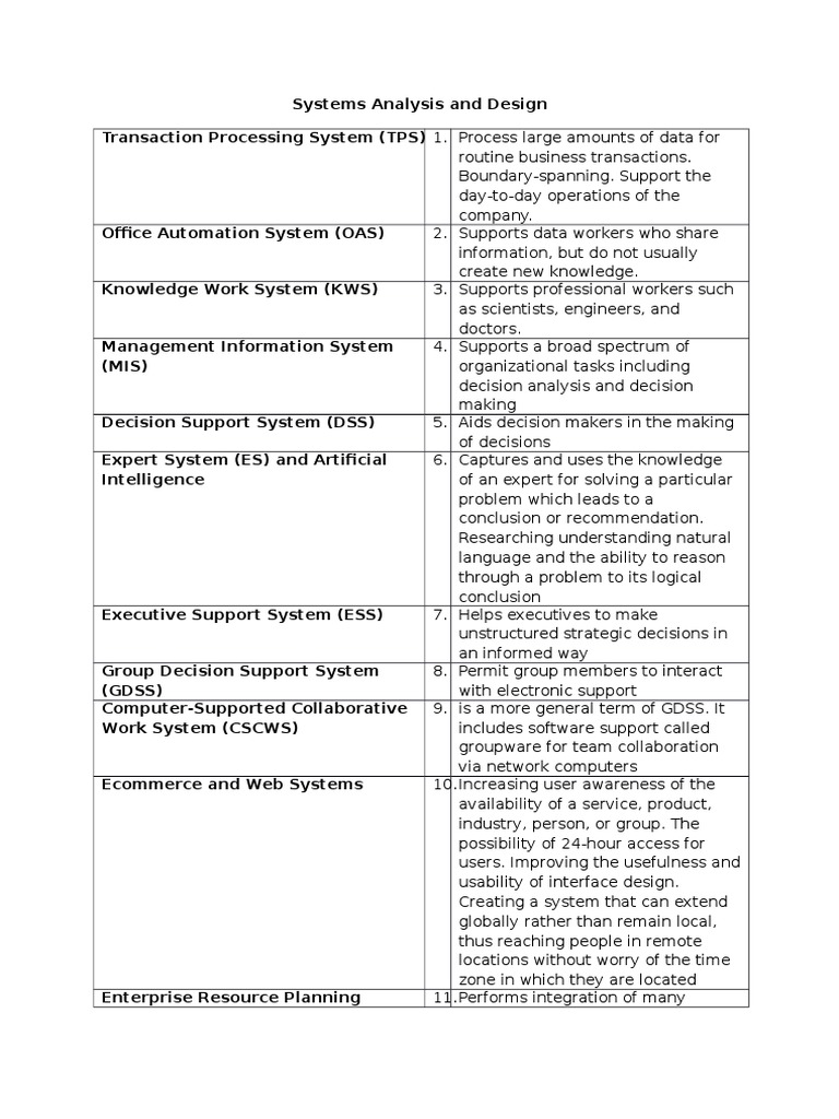Transaction Processing System (TPS) 1. Process large amounts of data for