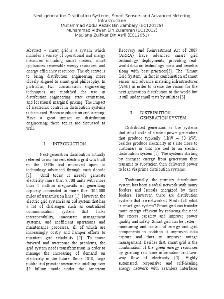 Next-generation Distribution Systems, Smart Sensors and Advanced Metering