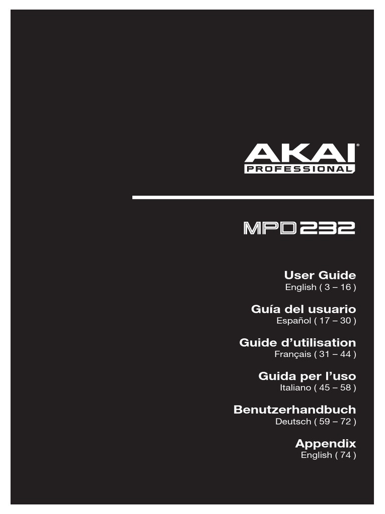 3. Select MPD232 as the controller in the Preferences, Device Setup, or Options of your DAW.