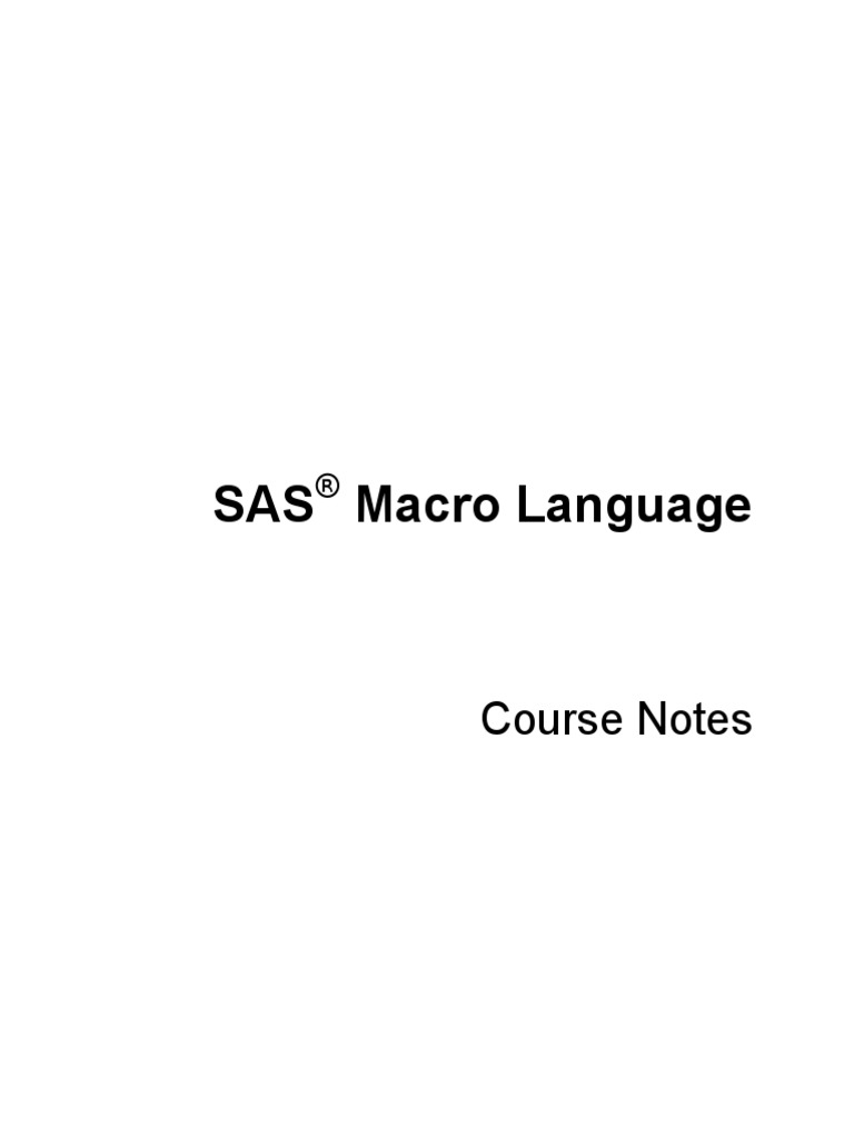SAS Macro Language Course Notes was developed by Davetta Dunlap and Susan Farmer. Additional