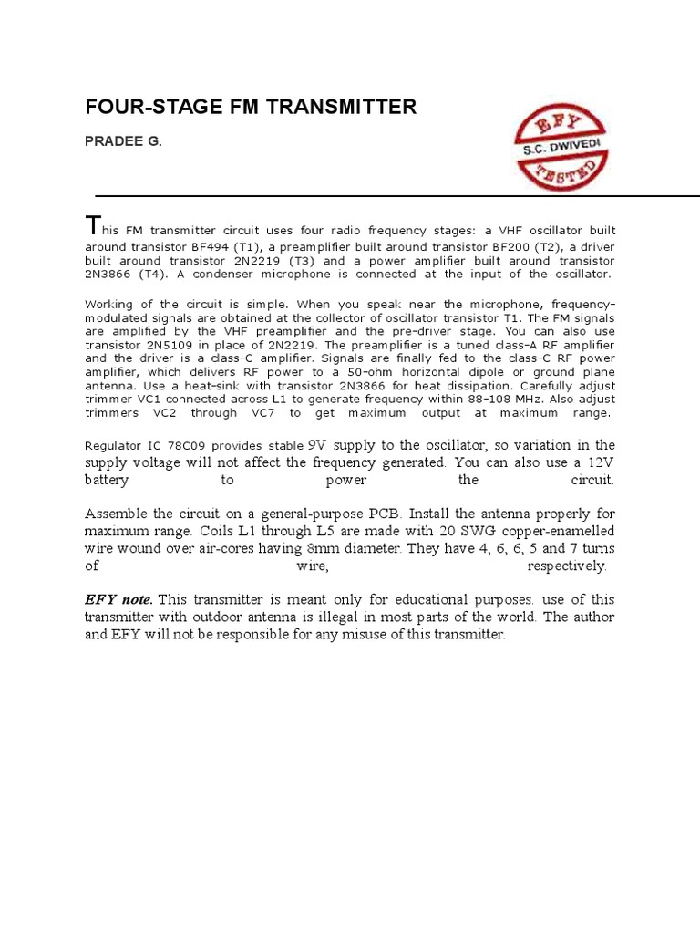 4 STAGE FM TRANSMITTER PUBLISHED IN EFY Please send PCB Layout FOR