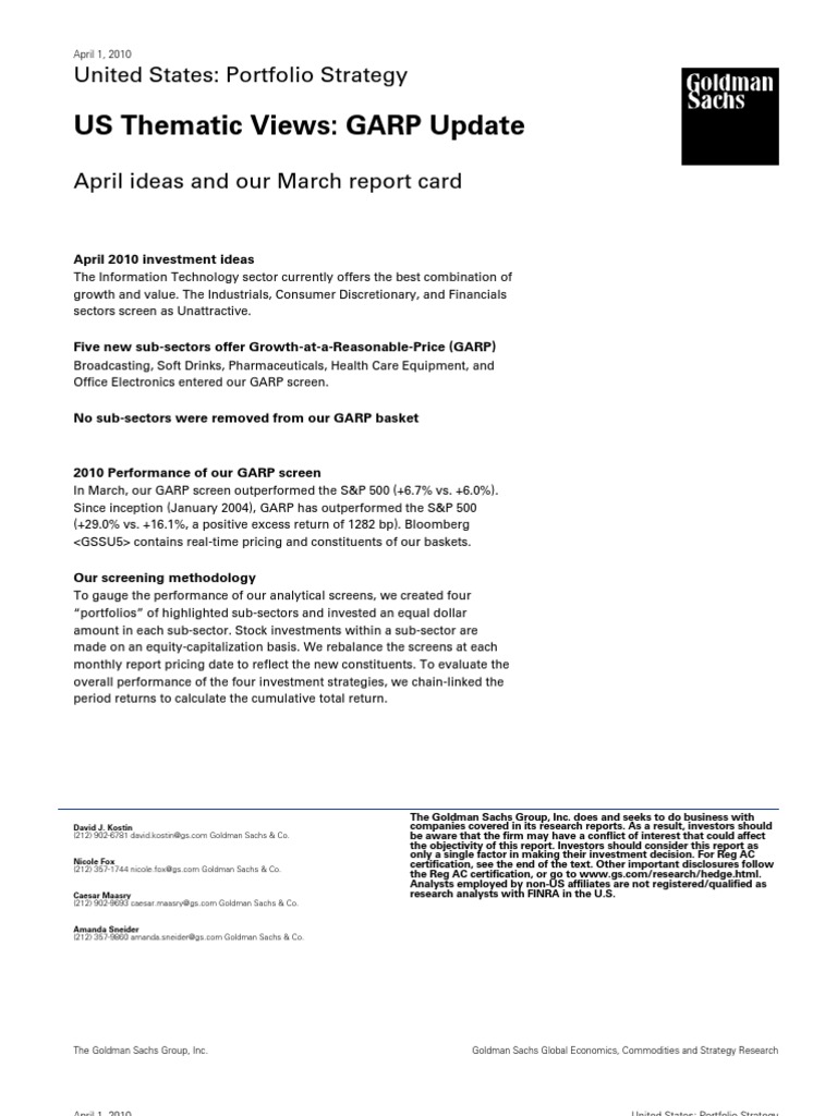April 1, 2010 United States: Portfolio Strategy