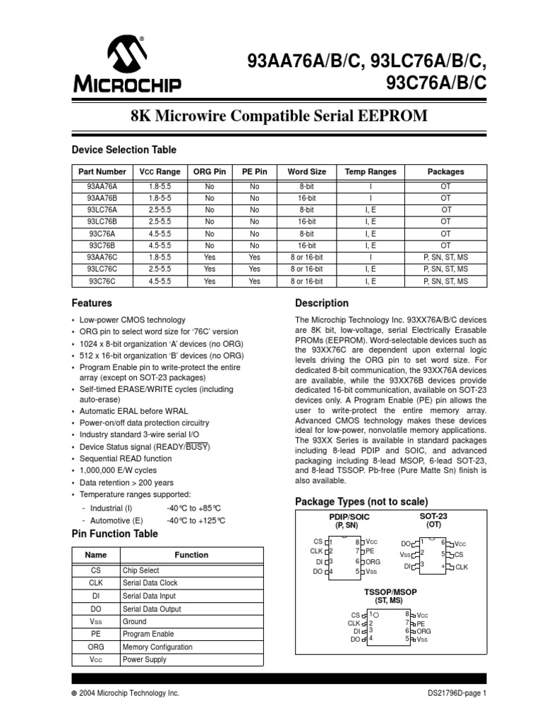 The Microchip Technology Inc. 93XX76A/B/C devices