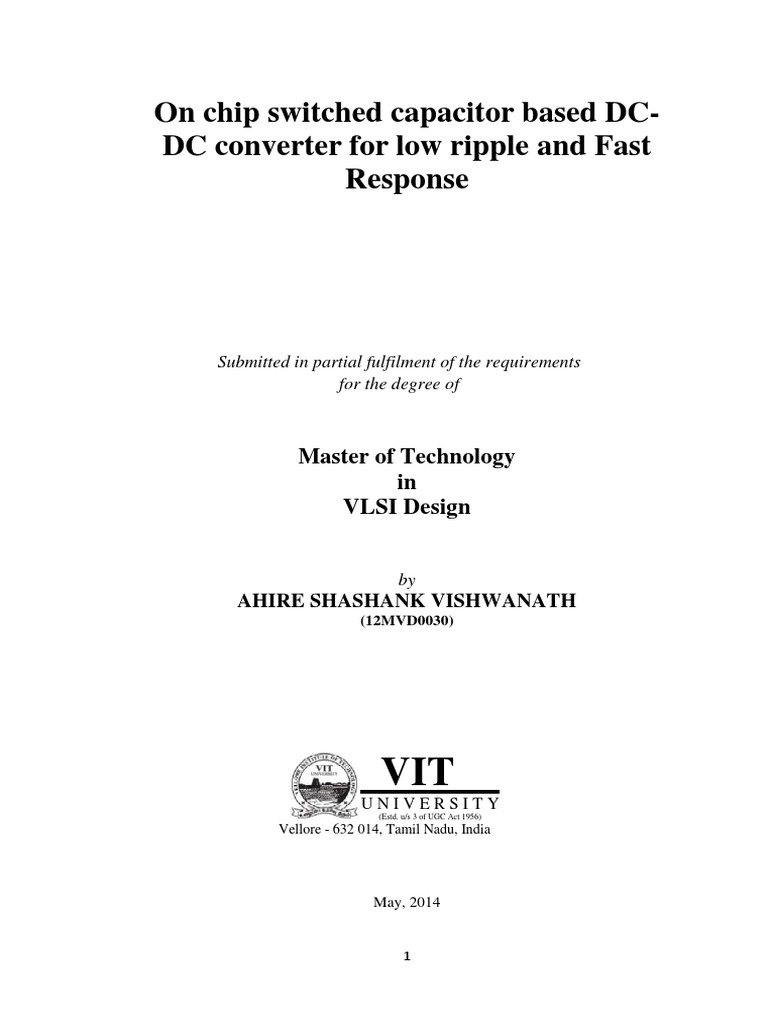 This is to certify that the Project work titled On chip switched capacitor based DCDC converter for low ripple and Fast Response that is being submitted by Ahire