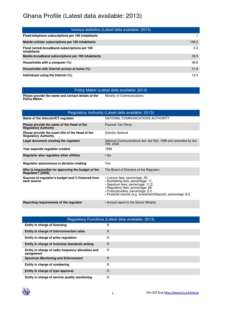 Financing of Universal Service activities and/or Universal Service Funds (Latest data available: 2013)