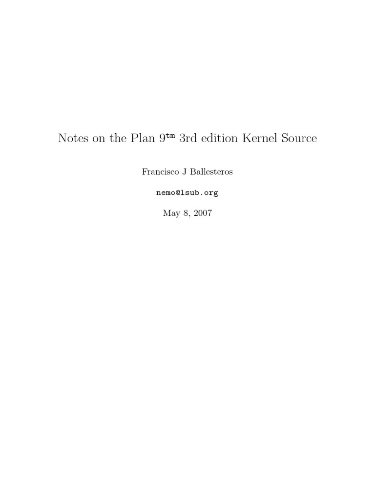 Notes On The Plan 9 Kernel Source, 3rd Edition