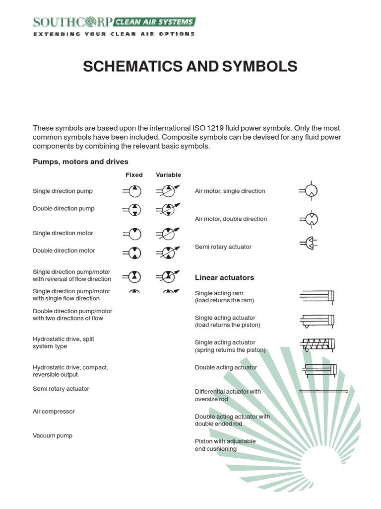 These symbols are based upon the international ISO 1219 fluid power symbols. Only the most