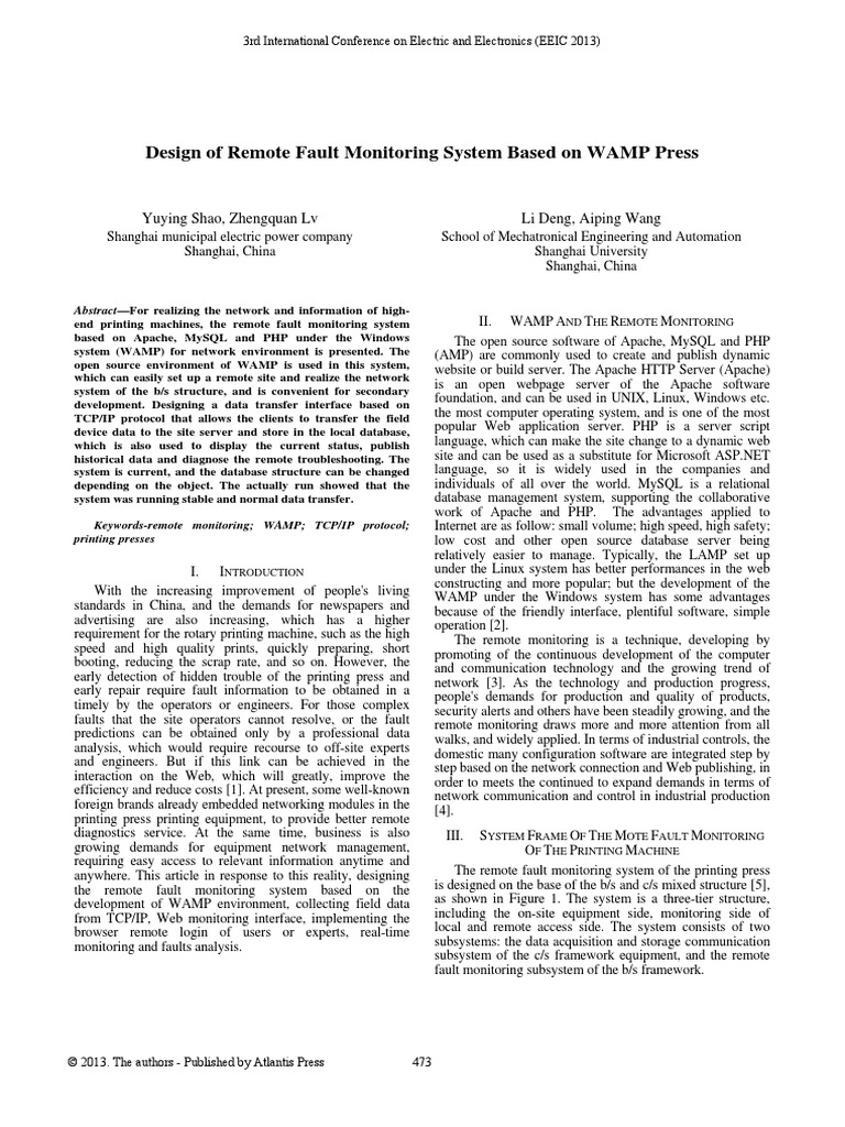 Design of Remote Fault Monitoring System Based on WAMP Press