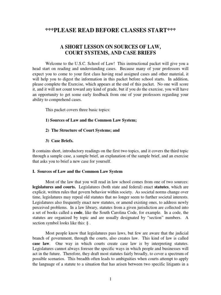 Welcome to the U.S.C. School of Law! This instructional packet will give you a