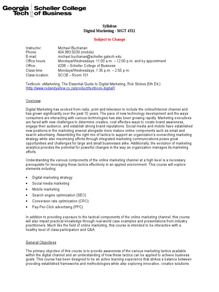 practitioners. Much like the field of online marketing, this course is intended to be interactive with a