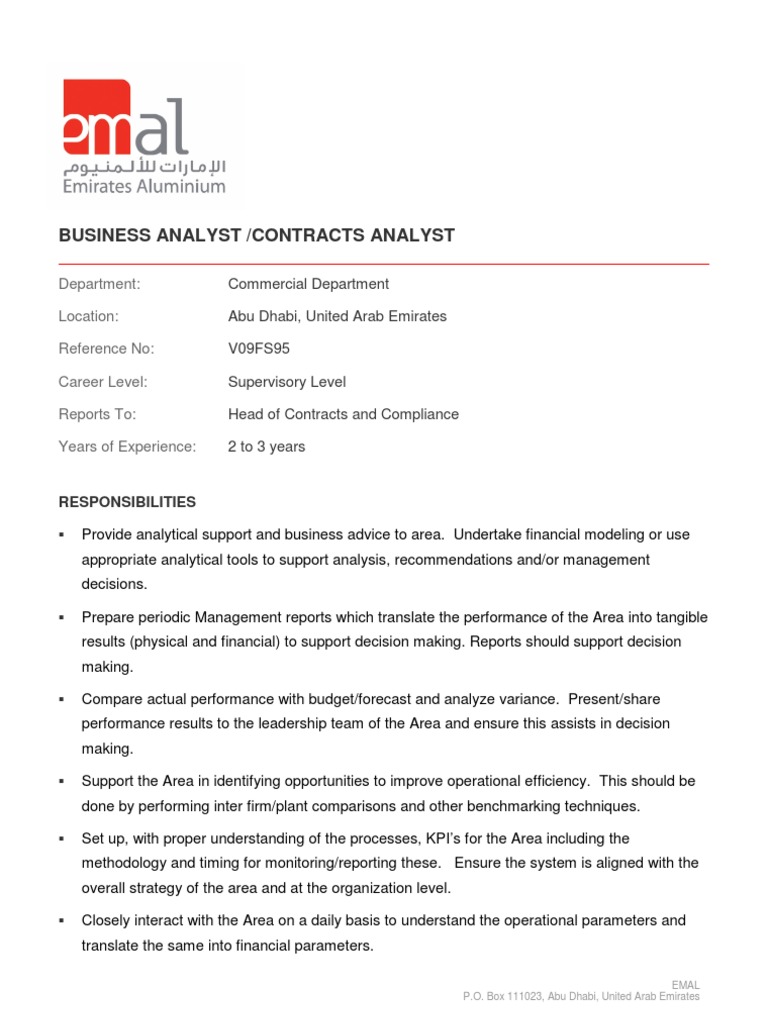 BUSINESS ANALYST /CONTRACTS ANALYST