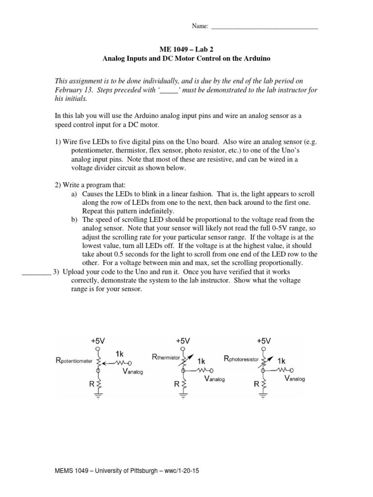 potentiometer, thermistor, flex sensor, photo resistor, etc.) to one of the Unos