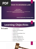 the legal environment of business. Business law is intended to infuse the much needed certainty
