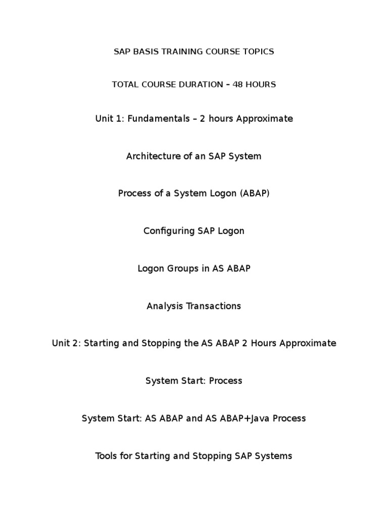 Unit 12: SAP Administration as Java 4 Hours Approximate
