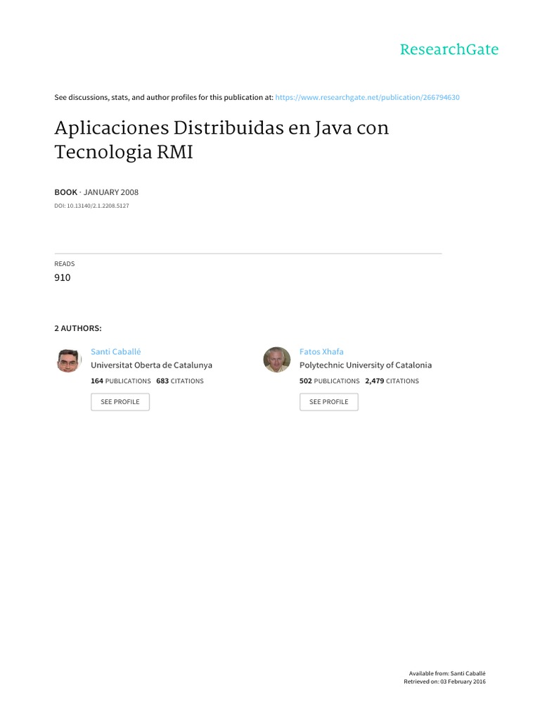 Aplicaciones Distribuidas en Java Con Tecnologia RMI: JANUARY 2008