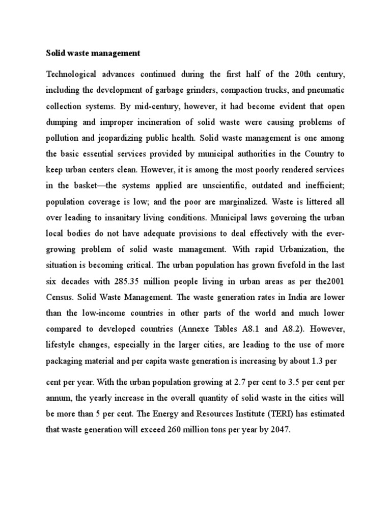 local bodies do not have adequate provisions to deal effectively with the evergrowing problem of solid waste management. With rapid Urbanization, the