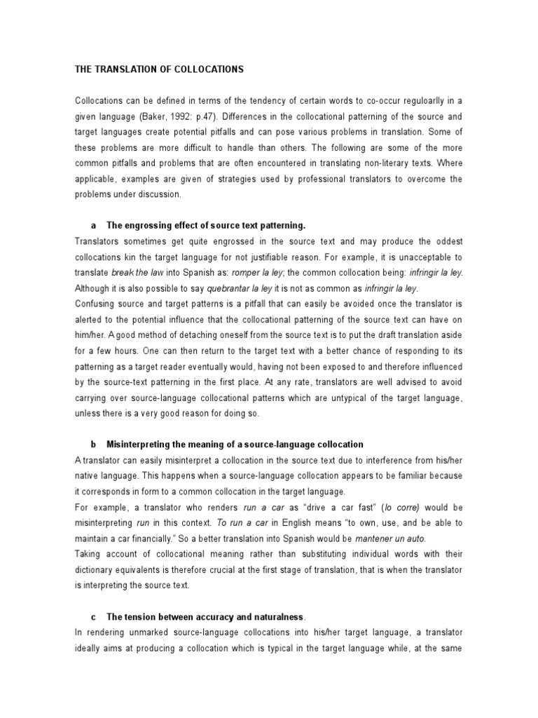 time, preserving the meaning associated with the source collocation. This ideal cannot always be