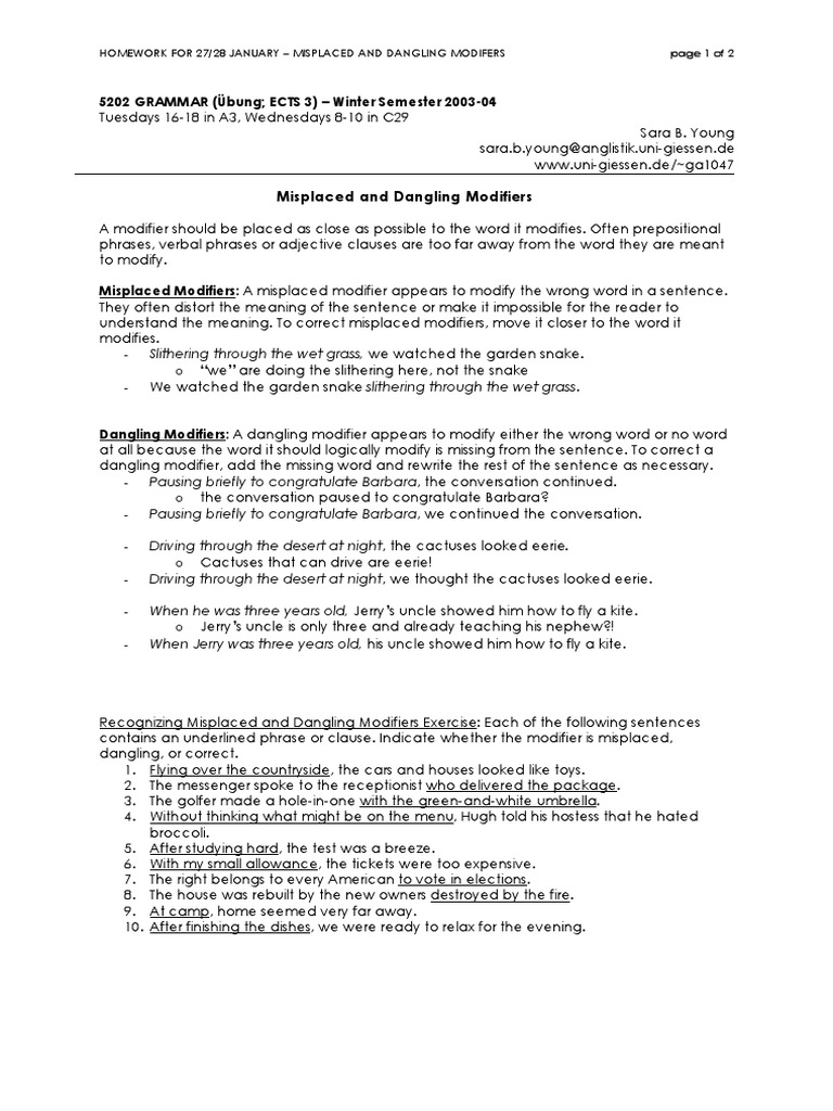 HOMEWORK FOR 27/28 JANUARY MISPLACED AND DANGLING MODIFERS