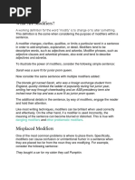 Misplaced Modifiers: A misplaced modifier appears to modify the wrong word in a sentence.
