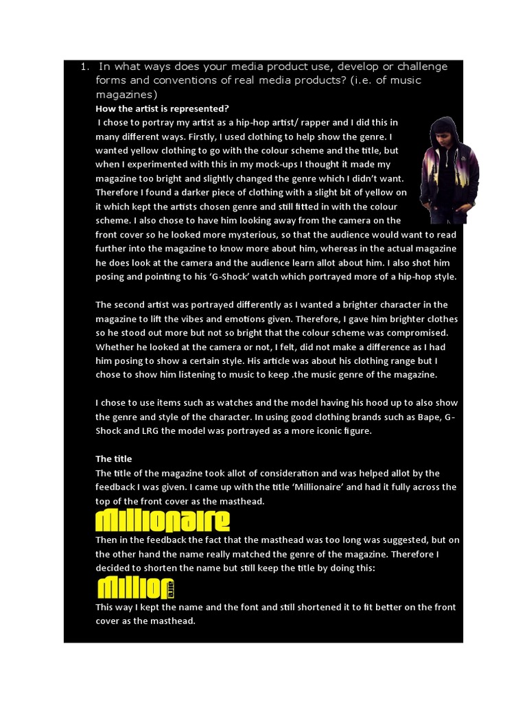 feedback I was given. I came up with the title ‘Millionaire’ and had it fully across the