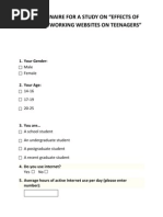 QUESTIONNAIRE FOR MOBILES NETWORK/ INTERNET PERFOMANCES