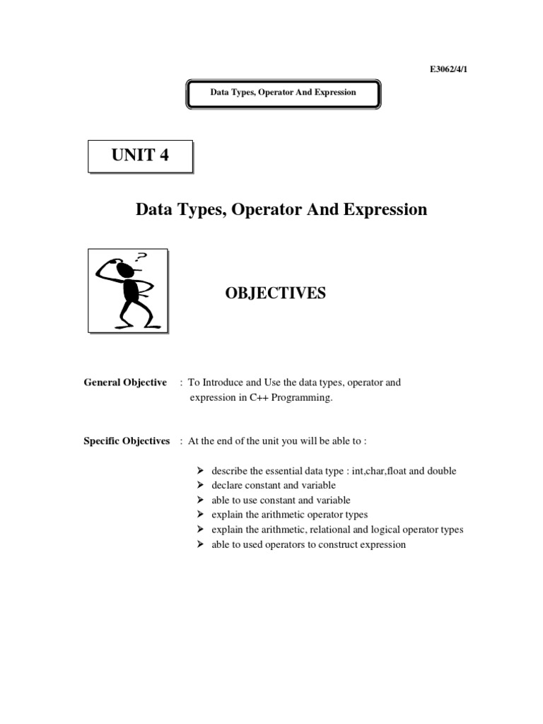 4.0 INTRODUCTION TO DATA TYPES, OPERATOR AND