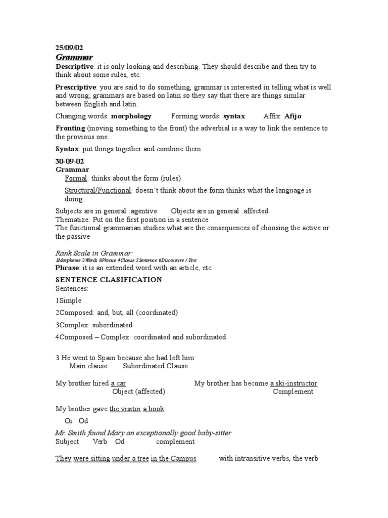 CLAUSES; Syntactic elements of sentences / clauses. SVOOCA