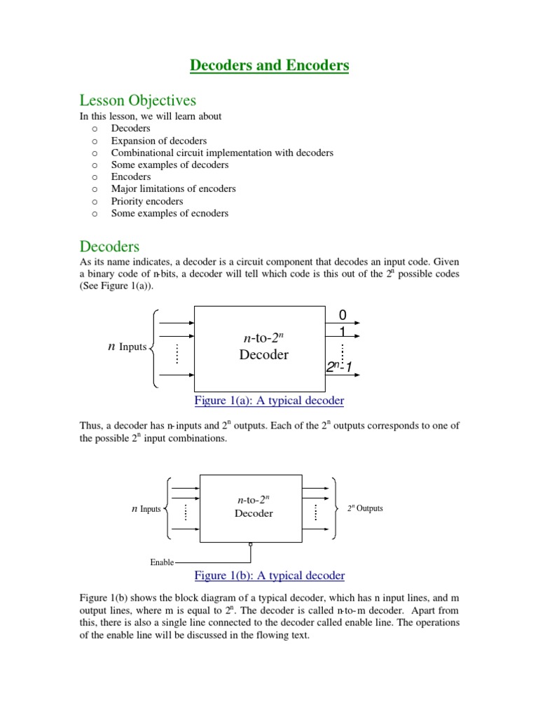 Figure 1(b) shows the block diagram of a typical decoder, which has n input lines, and m
