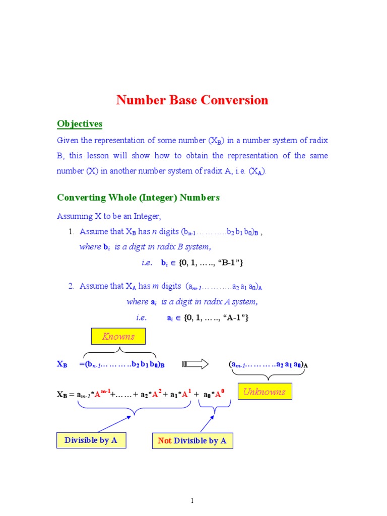 XB =(bn-1………..b2 b1 b0)B (am-1………..a2 a1 a0)A