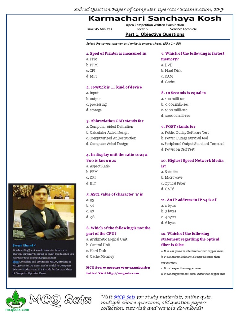 Select the correct answer and write in answer sheet. (50 x 1 = 50)